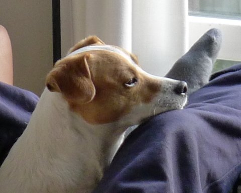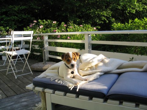 ![]() Jack til juleudstilling i Korsør d. 24/11 2012. Han fik Axcellent med CK og blev [...]bedste hanhund 2. Jack vandt den uofficielle konkurrence "Bedste bevægelser" - på en udstilling med ca. 70 hunde - godt gået Jack :-) Læs mere...↑ | ![]() 26/3 2013 - Jack bliver 6 år. | ![]() Én af Jacks yndlingsstillinger - han hviler sig hos Flemming i hundesofaen. |